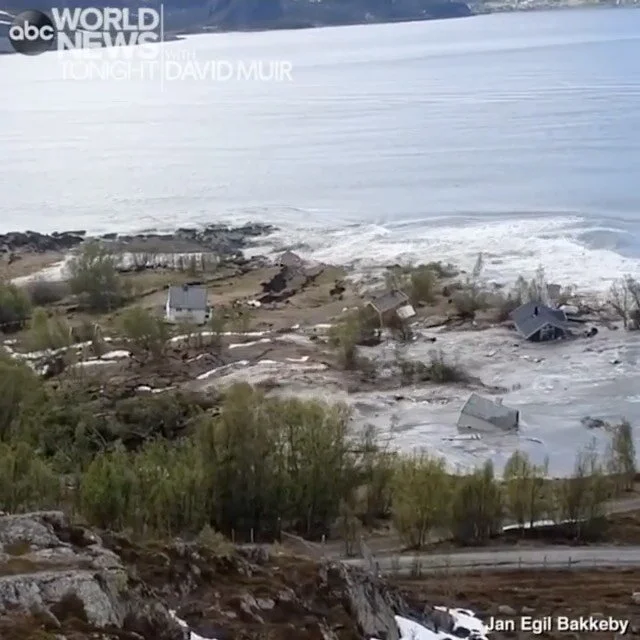 SWEPT TO SEA: Shocking video shows the moment eight houses were swept into sea in the Norwegian Arctic following a powerful landslide in the coastal town of Alta, Norway; no injuries were reported. #norway #landslide #sea